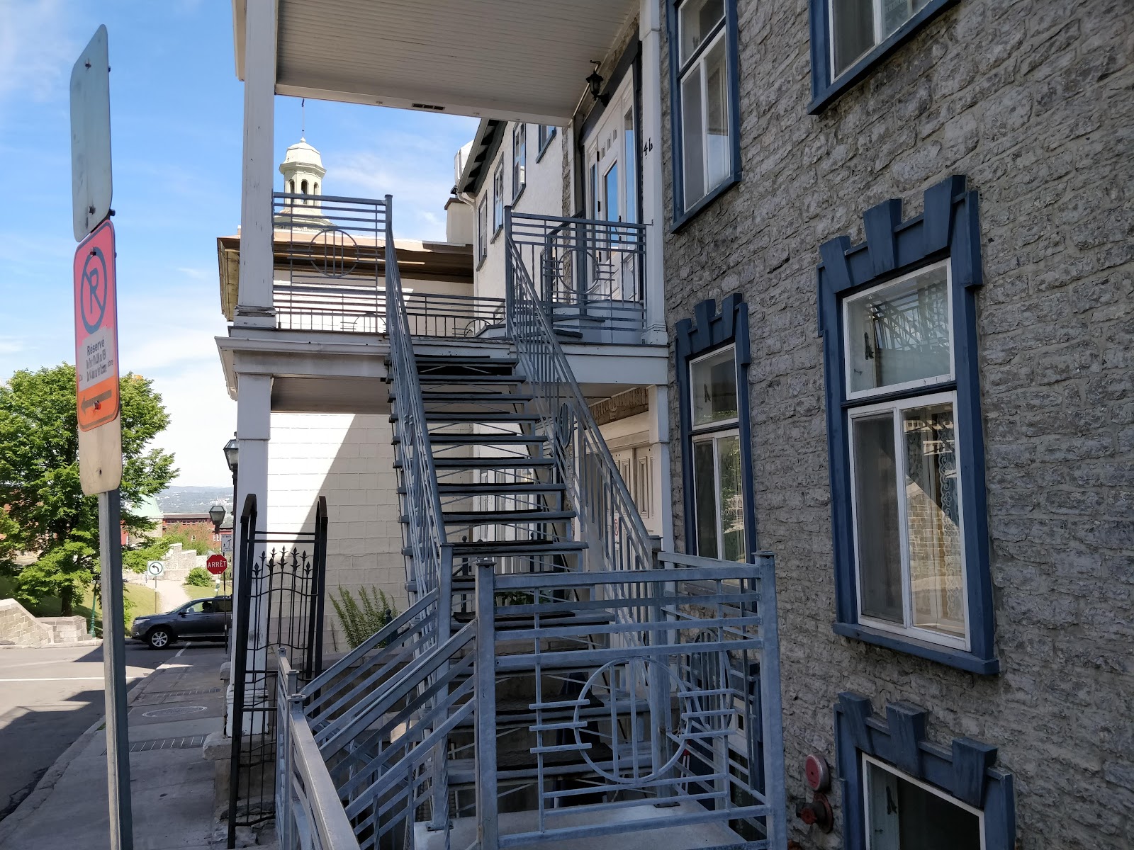 It’s mid-afternoon and we still are looking for propane. Fortunately, we spot an RV campsite and, after checking in with them, head across the street where we discover that we have a problem with our propane tank and it won’t fill properly. That needs to be fixed! So for the next couple of hours, we go from one recommended place to the next in Quebec City trying to get our problem solved. Everyone is very helpful, if a little sketchy, At one point our RV is surrounded by propane cylinders with a gentleman banging on the tank trying to unstick the propane valve, but unable to fix the problem. At our last stop, the mechanic says he can fix it, but not till Monday, we shall see how that turns out. We finally make it to our camping spot here in Quebec City – an abandoned zoo. It is now a park-and-ride and RVs are welcome to park here. It’s a short bus ride to Old Quebec City.