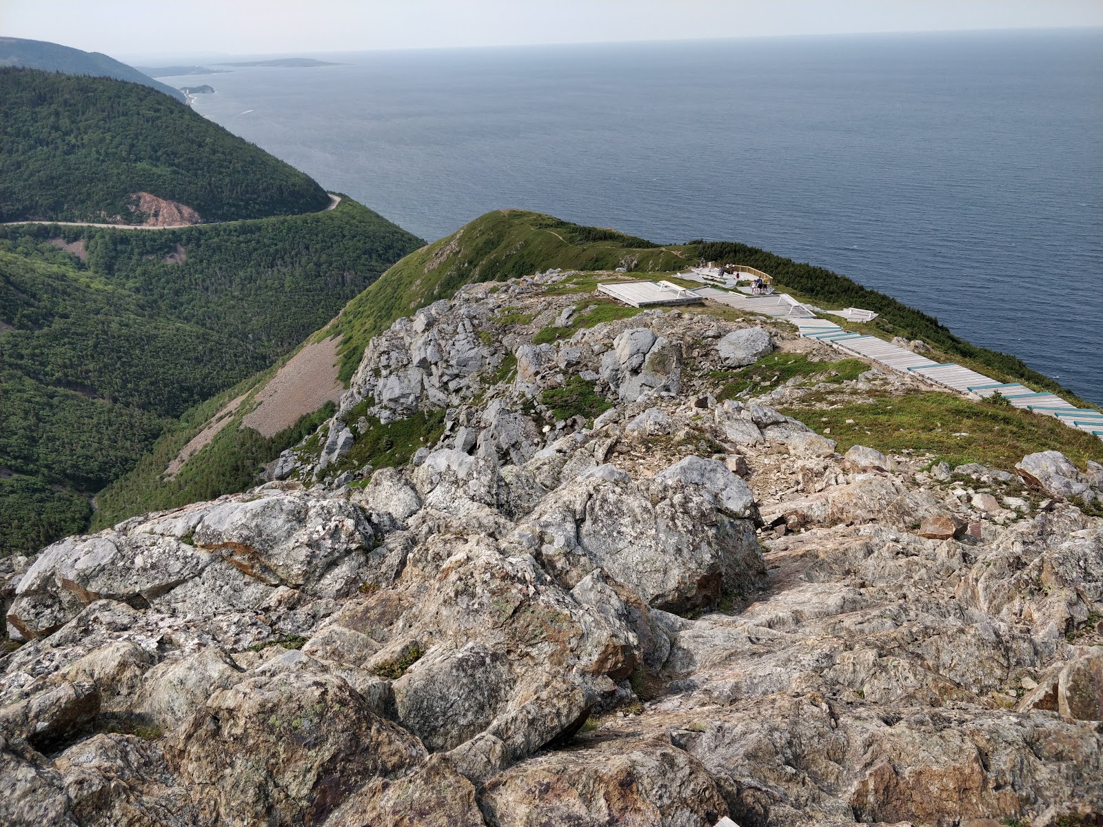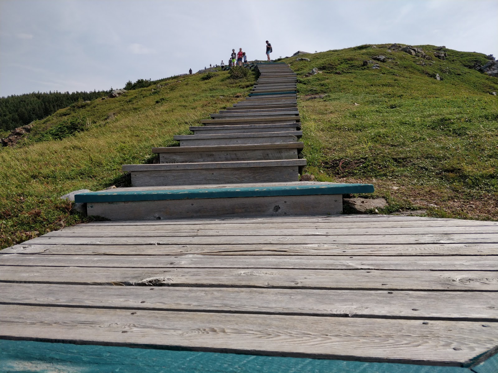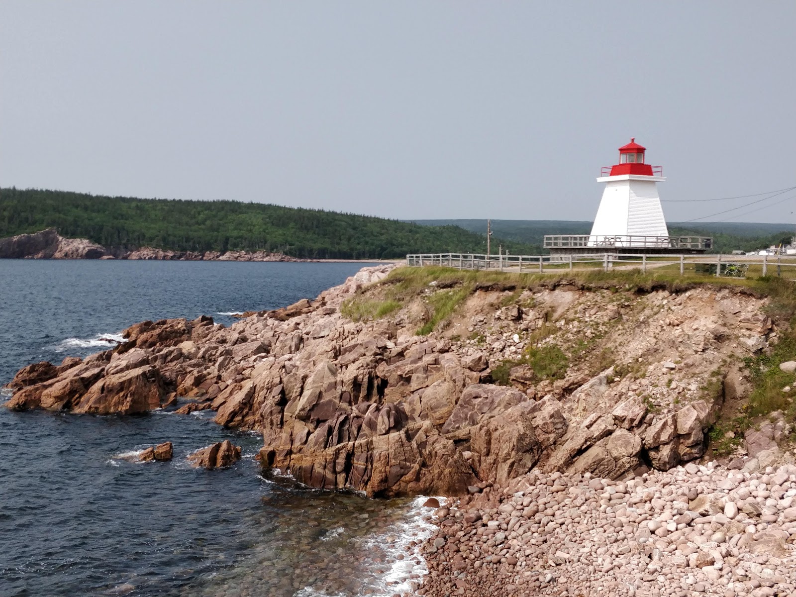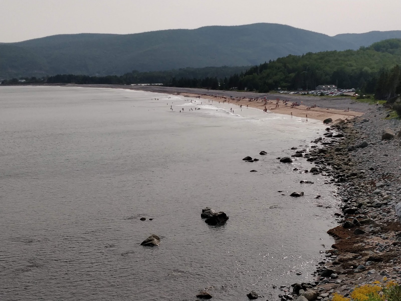 August 26 – Day 3 on the Cabot Trail. We hike the iconic Skyline Trail in the National Park. What a great view from the end of the trail overlooking the rugged coast, winding highway, and beach surf down the coast. On exiting the park, we visit Inverness with its sand dunes and lovely boardwalk.