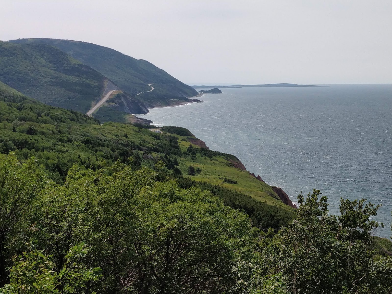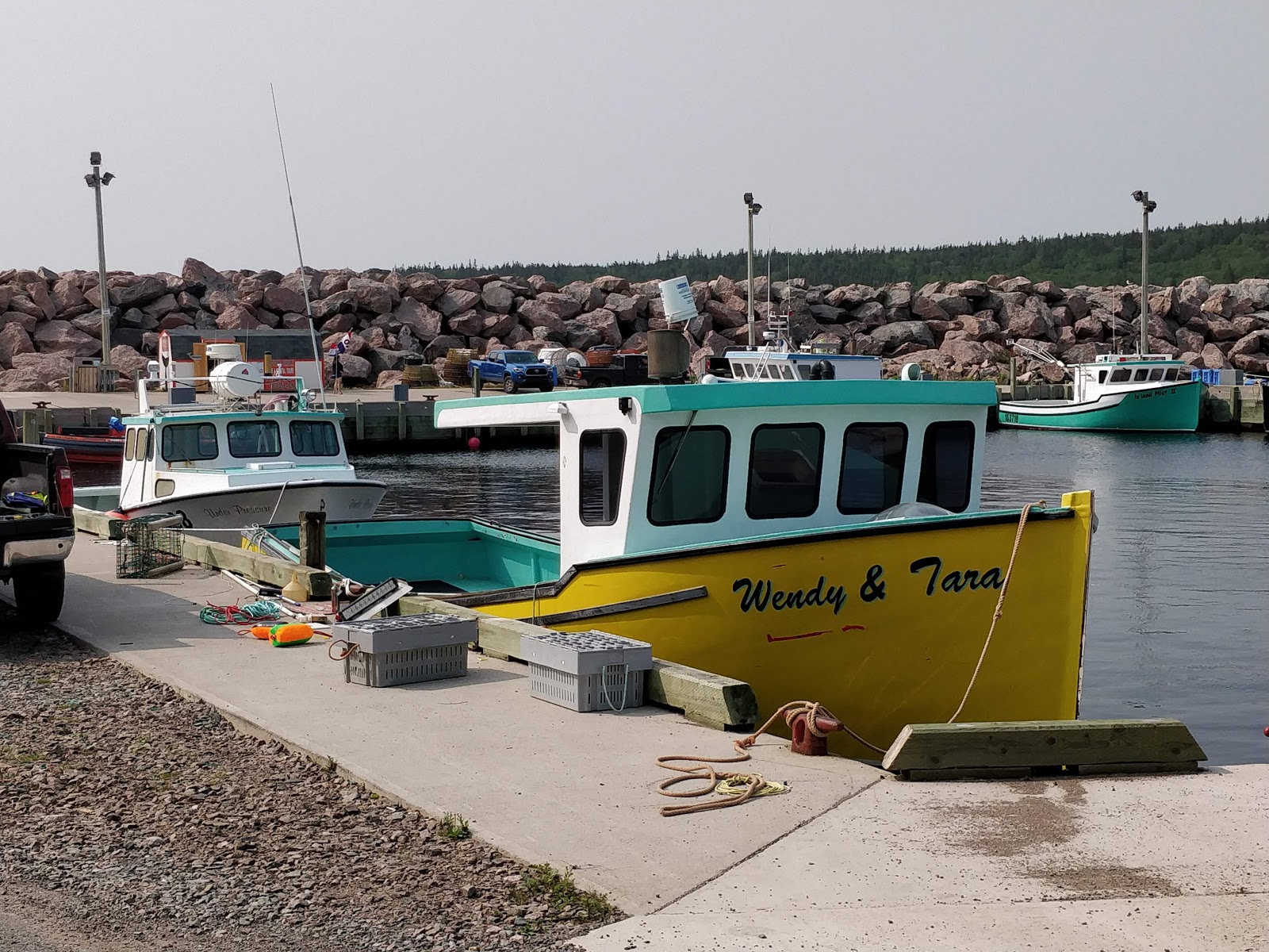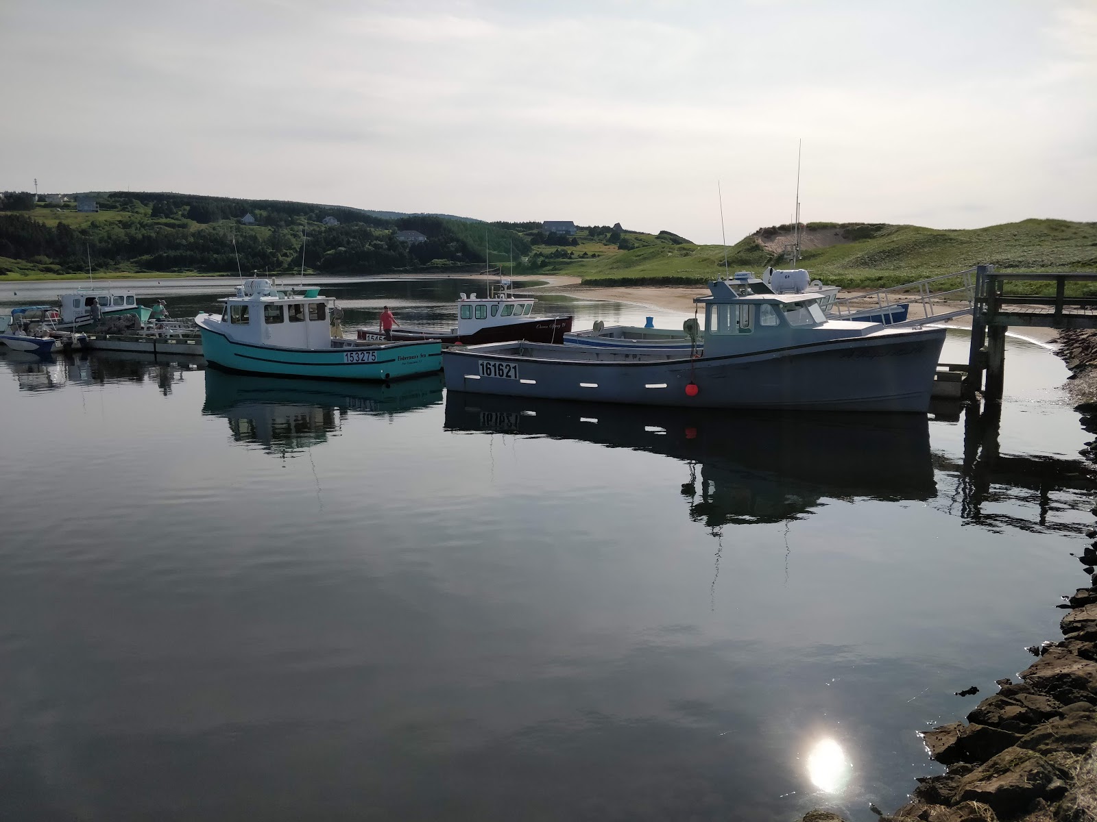 Time to hit the Cabot Trail. We spend the day driving up the winding roads stopping along the way at a couple of overlooks. The views are okay, but the views along the Gaspesie drive were nicer. Our only stop of the day is a 1 1/2 hike in Cape Breton National Park (Middlehead). At the end of the trail when it was time to turn back, we were lucky enough to spot some small whales out to sea – Atlantic Pilot Whales we think. Our luck held as our last stop was to a boat dock which turned out to be where we spent the night.