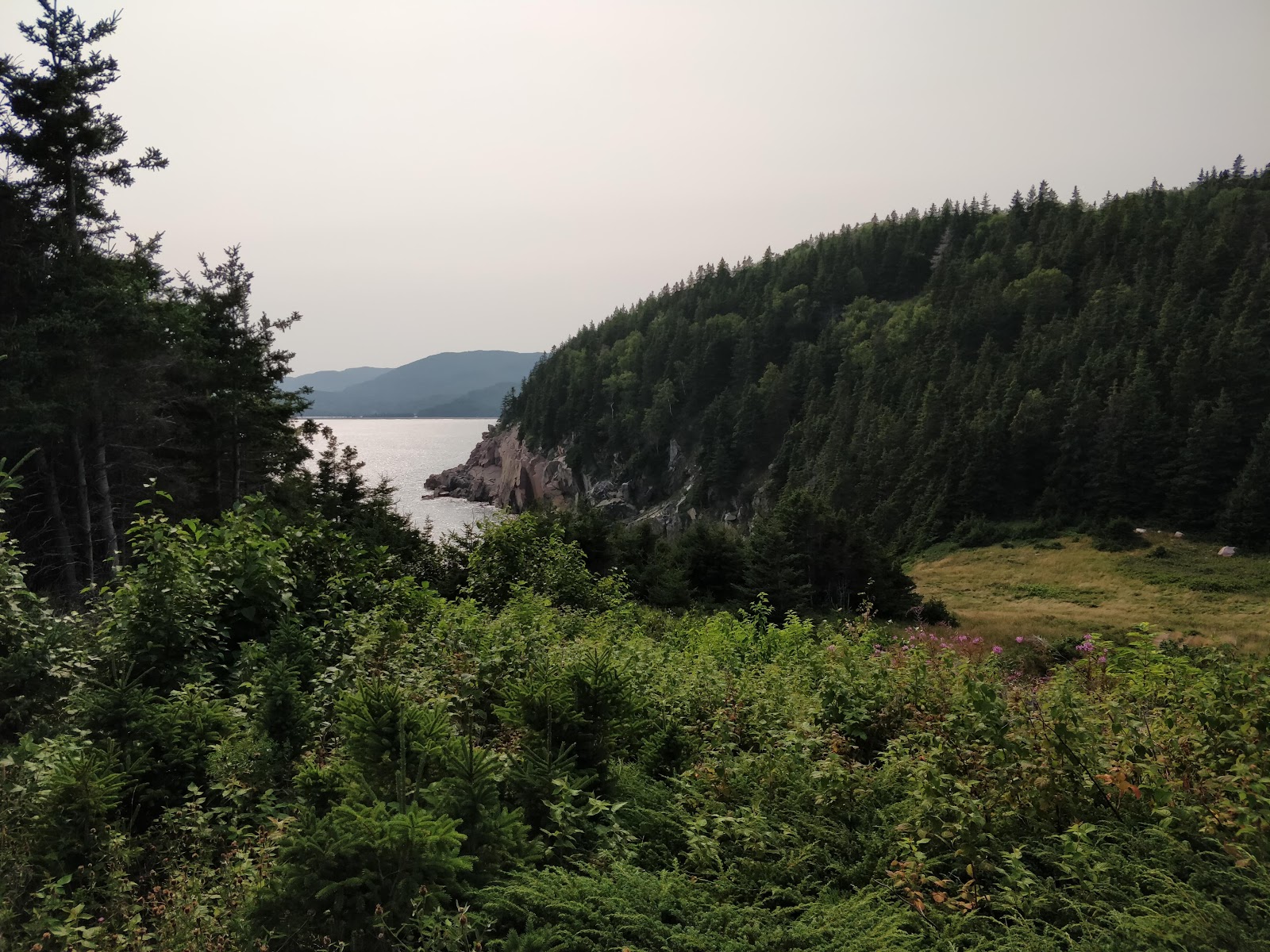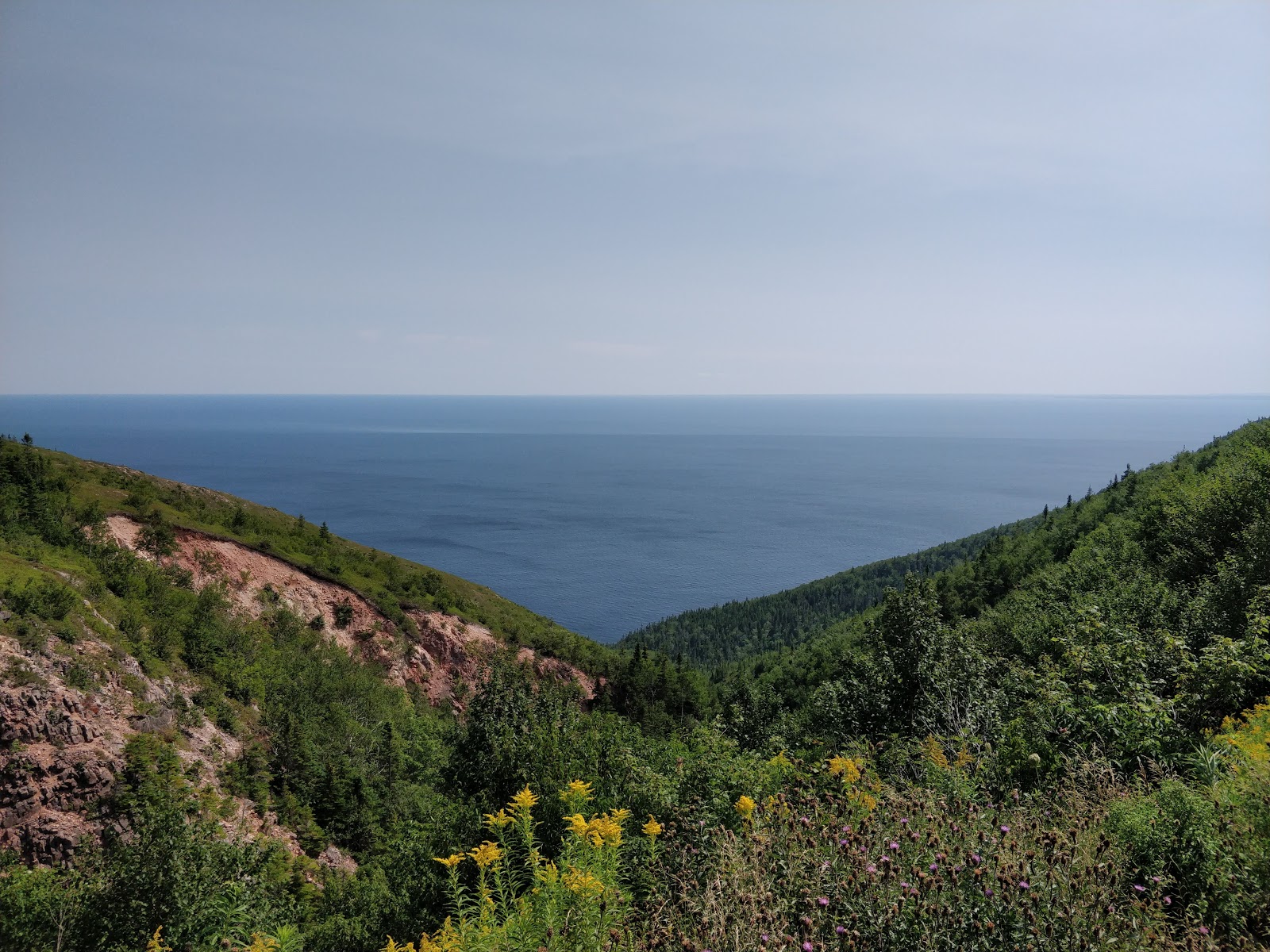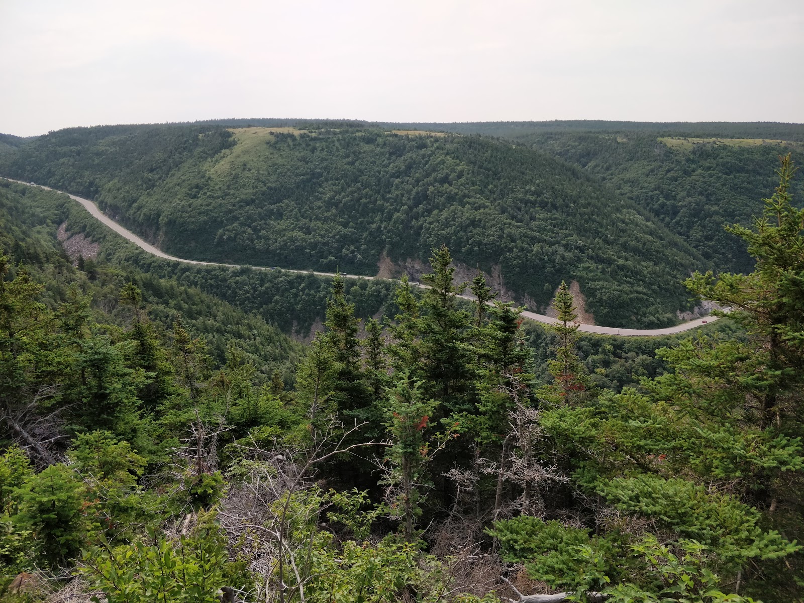 Time to hit the Cabot Trail. We spend the day driving up the winding roads stopping along the way at a couple of overlooks. The views are okay, but the views along the Gaspesie drive were nicer. Our only stop of the day is a 1 1/2 hike in Cape Breton National Park (Middlehead). At the end of the trail when it was time to turn back, we were lucky enough to spot some small whales out to sea – Atlantic Pilot Whales we think. Our luck held as our last stop was to a boat dock which turned out to be where we spent the night.