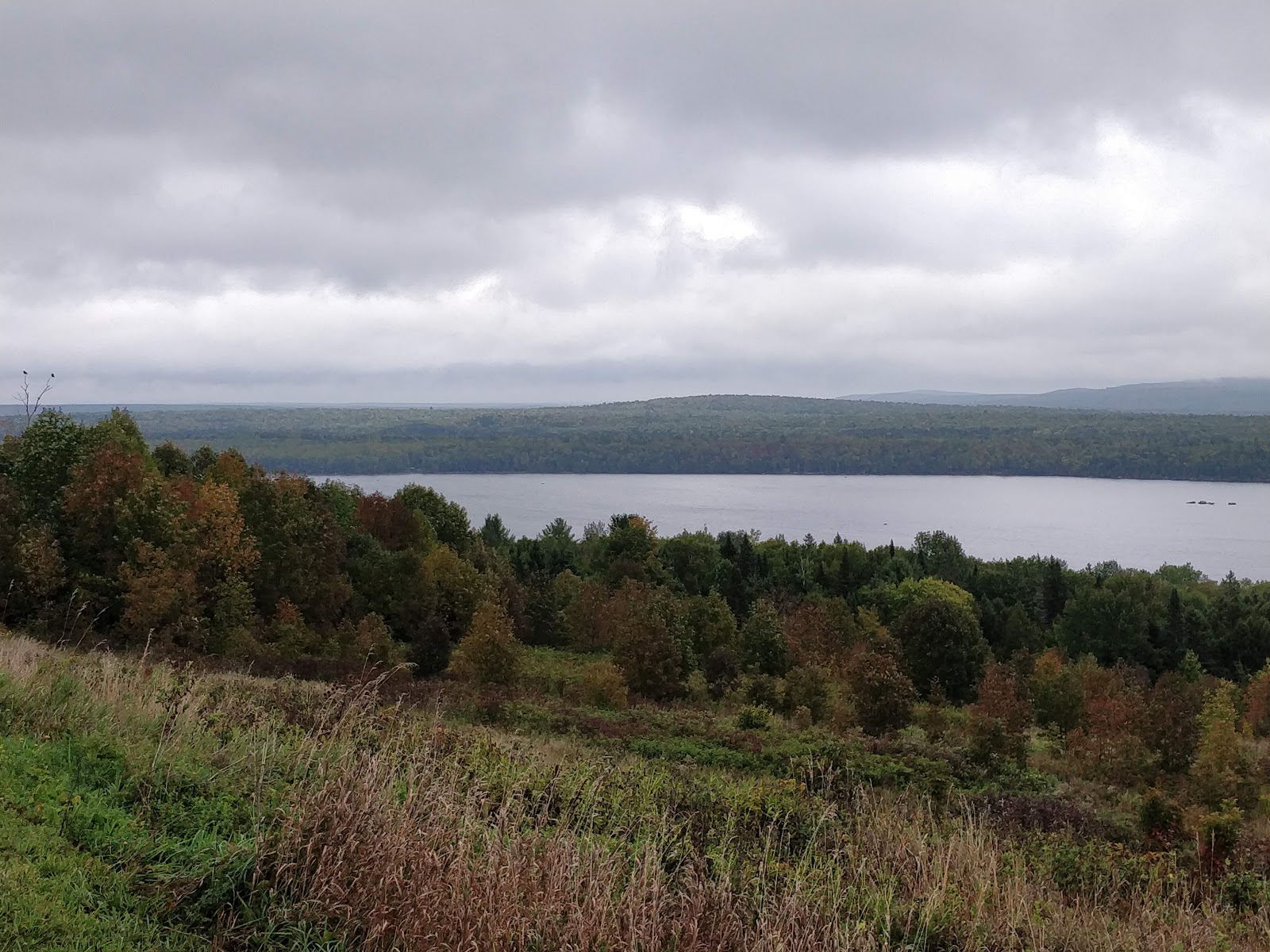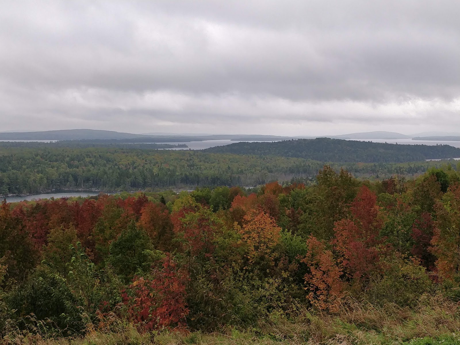 Sept 26 – we cross over into Maine through Houlitan. Of course, we are “randomly selected” for a border inspection… After a few more questions inside the building and an inspection, we are permitted into America. We see lots of logging trucks and rural country roads with American flags everywhere. A truck goes by with large moose antlers and carcass in the back. We dodge a dozen wild turkeys and a dozen ducks crossing the road before overnighting by the beach out in the middle of nowhere. It should be quiet, but there is a heavy rain and windstorm all night.