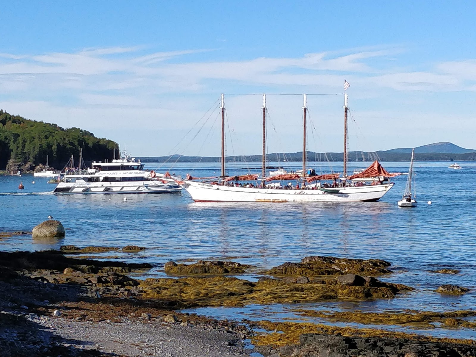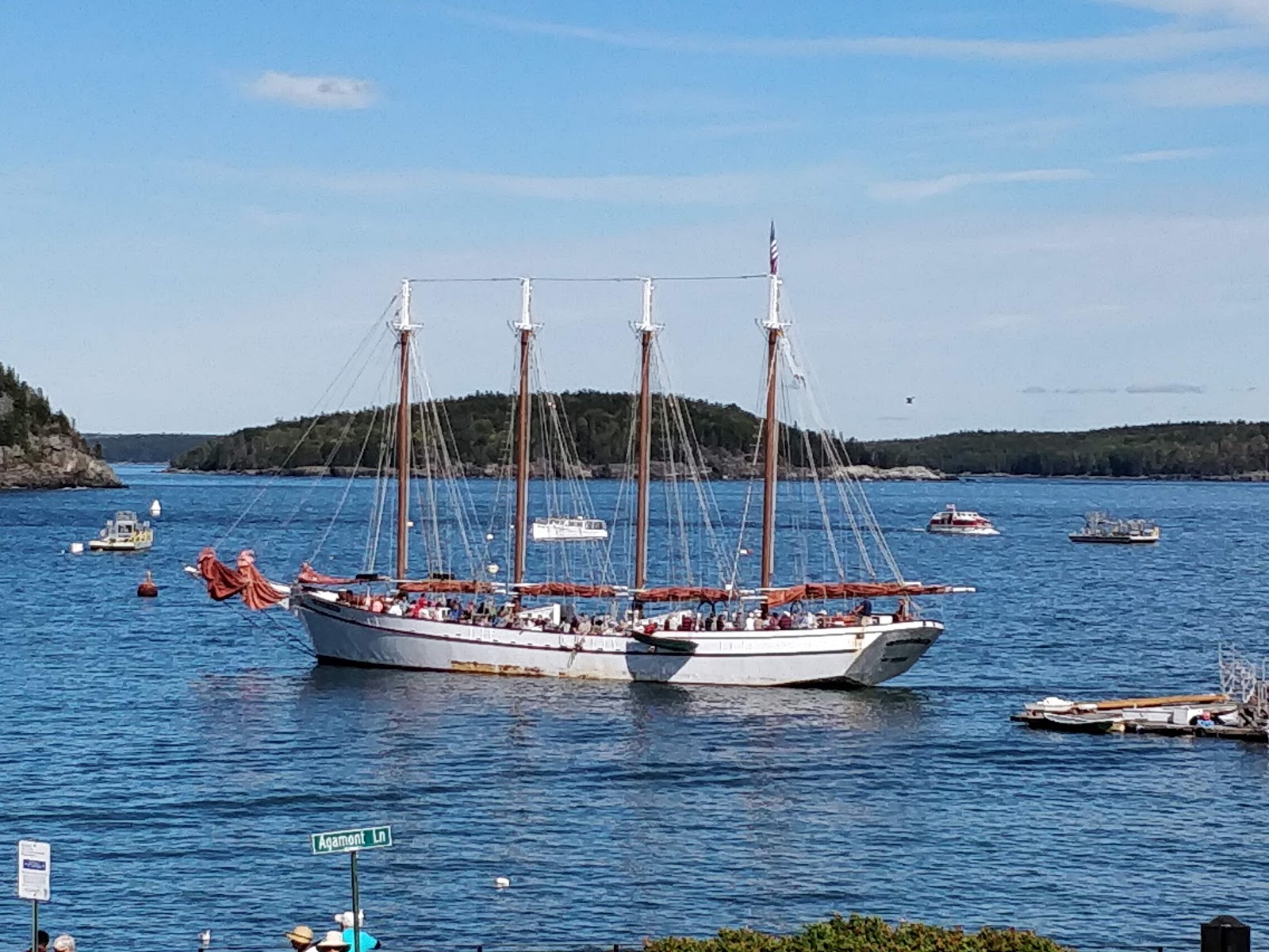 We spend a lovely sunny afternoon in Bar Harbor. This is a very touristy town full of old mansions and inns. There are a lot of tourists in town despite it being a Thursday in late September. We can see 3 cruise ships in the harbor, as well as some windjammers out on tours.