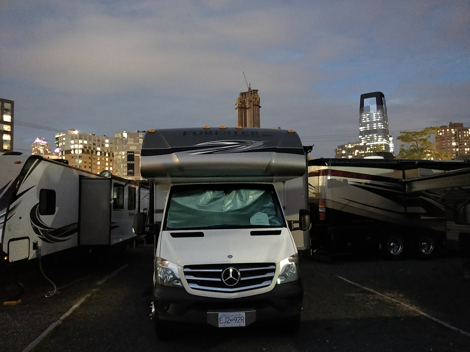 A white-knuckle driving experience into Jersey City. Who would believe there is an RV campground within sight of Manhattan and the Statue of Liberty? It is basically a parking lot with RVs sandwiched in everywhere at $100 a night with water and electric hookups. There is even some tent camping available on artificial turf.