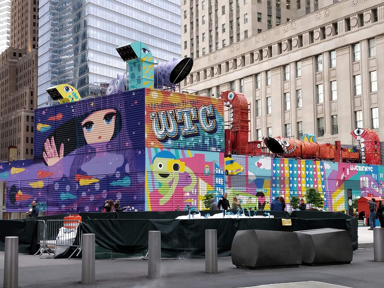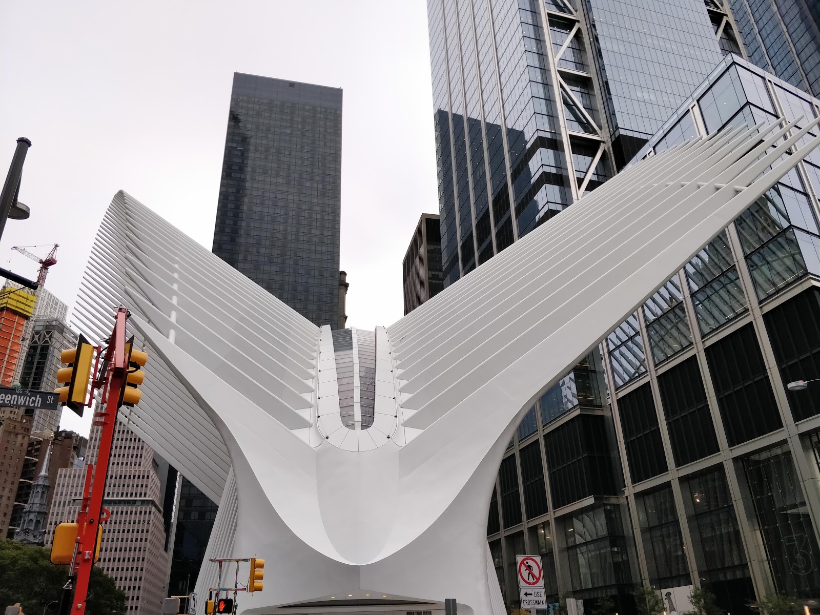 We visit the World Trade Center, a massive white marble building housing subways, trains, and lots of shopping. Outside here is the 9/11 Memorial – a thought-provoking memorial comprised of two reflecting pools with water spilling into their centers into a very deep hole that visitors cannot see the bottom of. The names of the victims are engraved along the edges of the two pools.