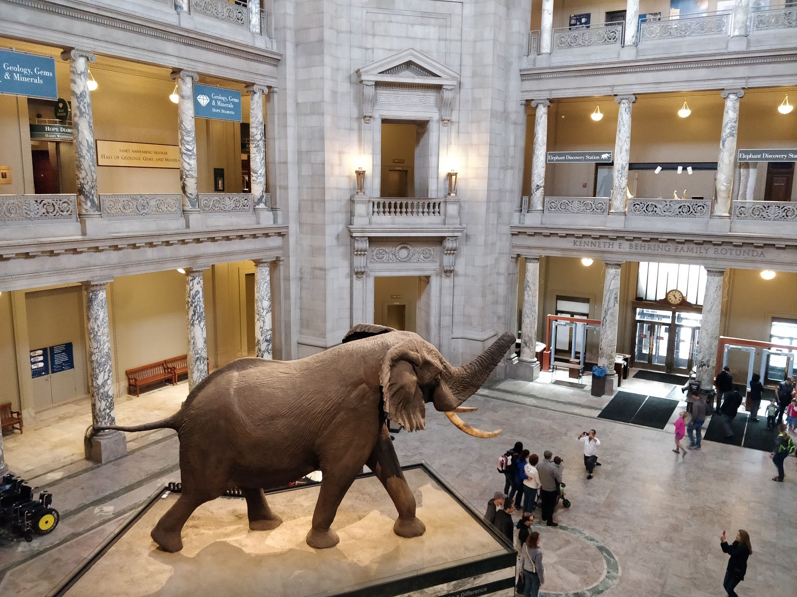 The National Museum of Natural History is huge!  Lots of information and displays about ancient and modern mammals, early humans, birds, insects, sea life, volcanoes, and even live butterflies.  A very large display about rocks and gems – even the Hope diamond is on display.  Preserved animals and insects from hundreds of years ago are studied to compare DNA and other markers for research.