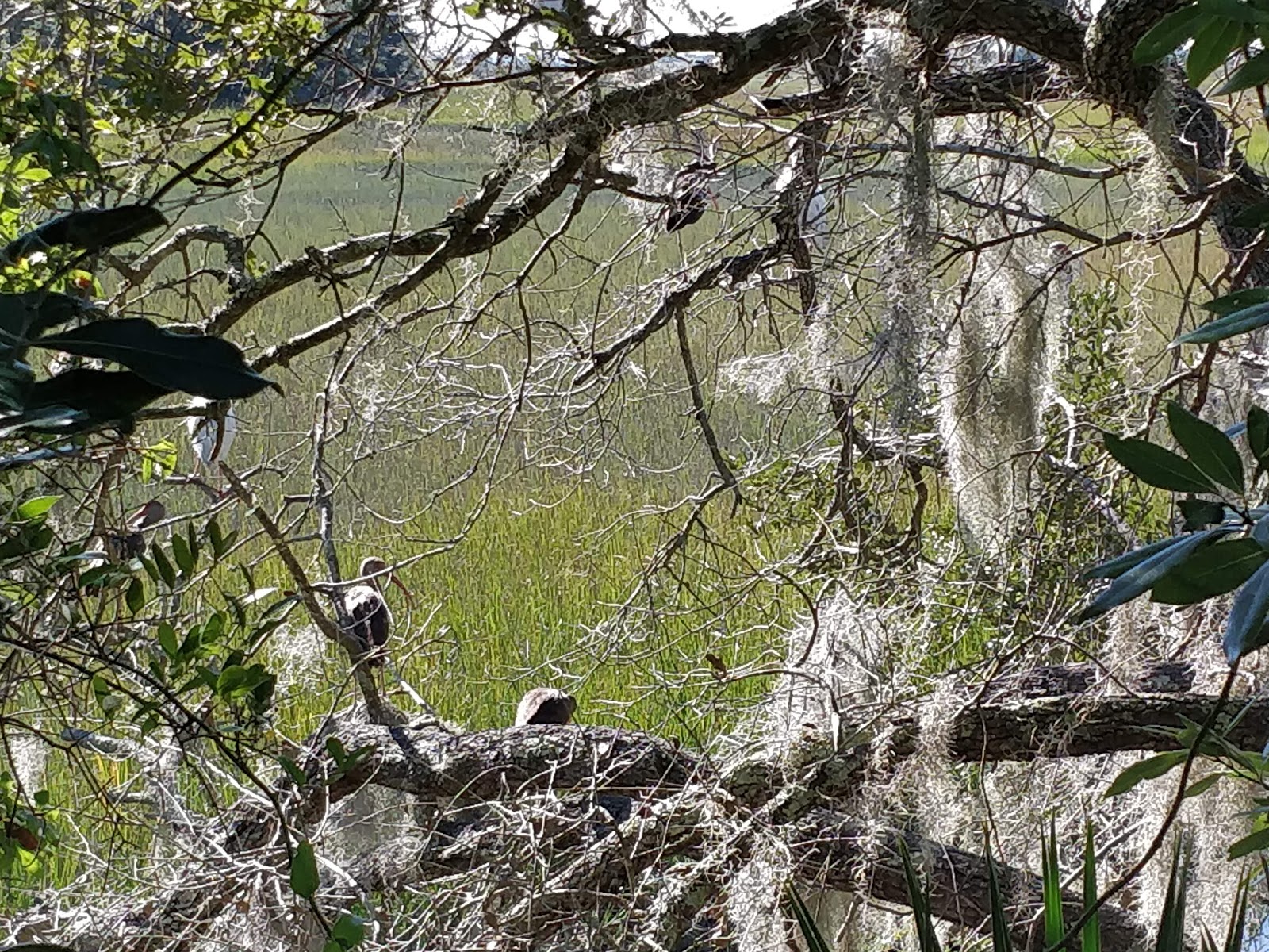Nov 17 – Jekyll Island in Georgia was the millionaire’s playground in the day.  It is still very exclusive and has 4 golf courses within its 10 square miles.  We take a long bike ride along the shores,  seeing beaches choked with downed trees from a recent hurricane.  Our favorite stop is the Georgia Sea Turtle Center, a hospital for injured sea turtles.  We are lucky to see a sea turtle receive IV nutrition, as well as have its infected flipper irrigated and dressed.  This turtle has a deep gash in its shell from a boat strike.  An injured tortoise chewed on by a Great Dane is also treated, having its front legs irrigated and dressed.  These infected wounds are being treated with maggot therapy to get rid of the infected tissue.  Amazing how similar the treatment is to what we might see in humans.  The vet even uses Tylenol and Tramadol to treat pain.  Other turtles and small hatchlings are also being cared for here. Amazing visit to see these magnificent creatures.