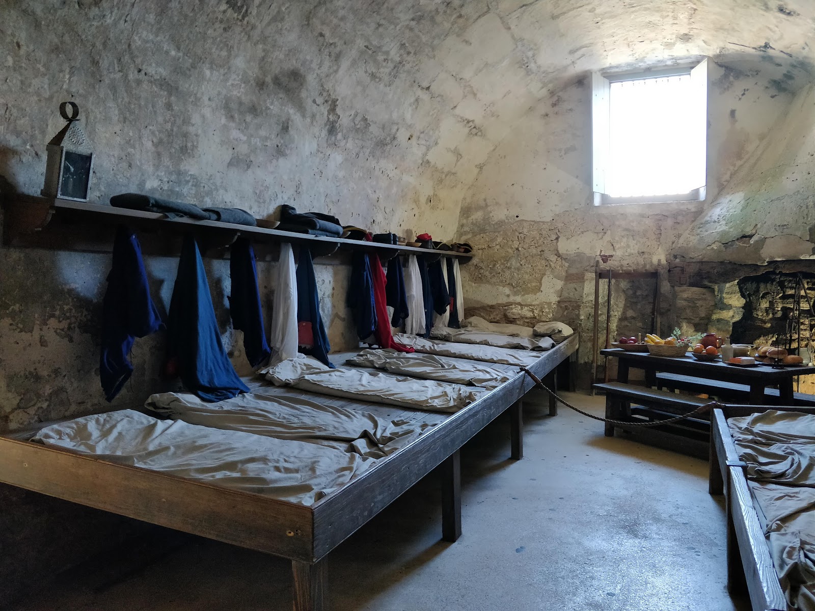 The Fort-Castillo de San Marco is a Spanish fort built in 1672 to defend the city. The fort and walls are made of coquina, a compressed mixture of sand and shells that is flexible and would compress when struck by cannonballs instead of breaking.