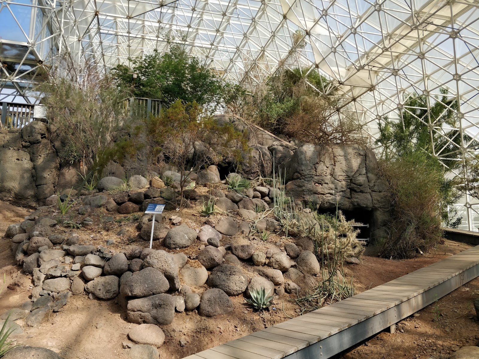 Today the biosphere contains a rainforest, ocean (1 million gallon tank), desert, swamp, and grasslands. The University of Arizona owns the complex and researches how natural environments affect life. They are able to control factors such as oxygen, temperature, precipitation, CO2 levels, ocean acidity, pH, and salinity to research how plants are affected. Their next ocean project is to test coral hoping to find corals that can live in today’s ocean conditions. As well, they are researching how volcanic basalt breaks down into soil – something that may be useful for Mars colonization.