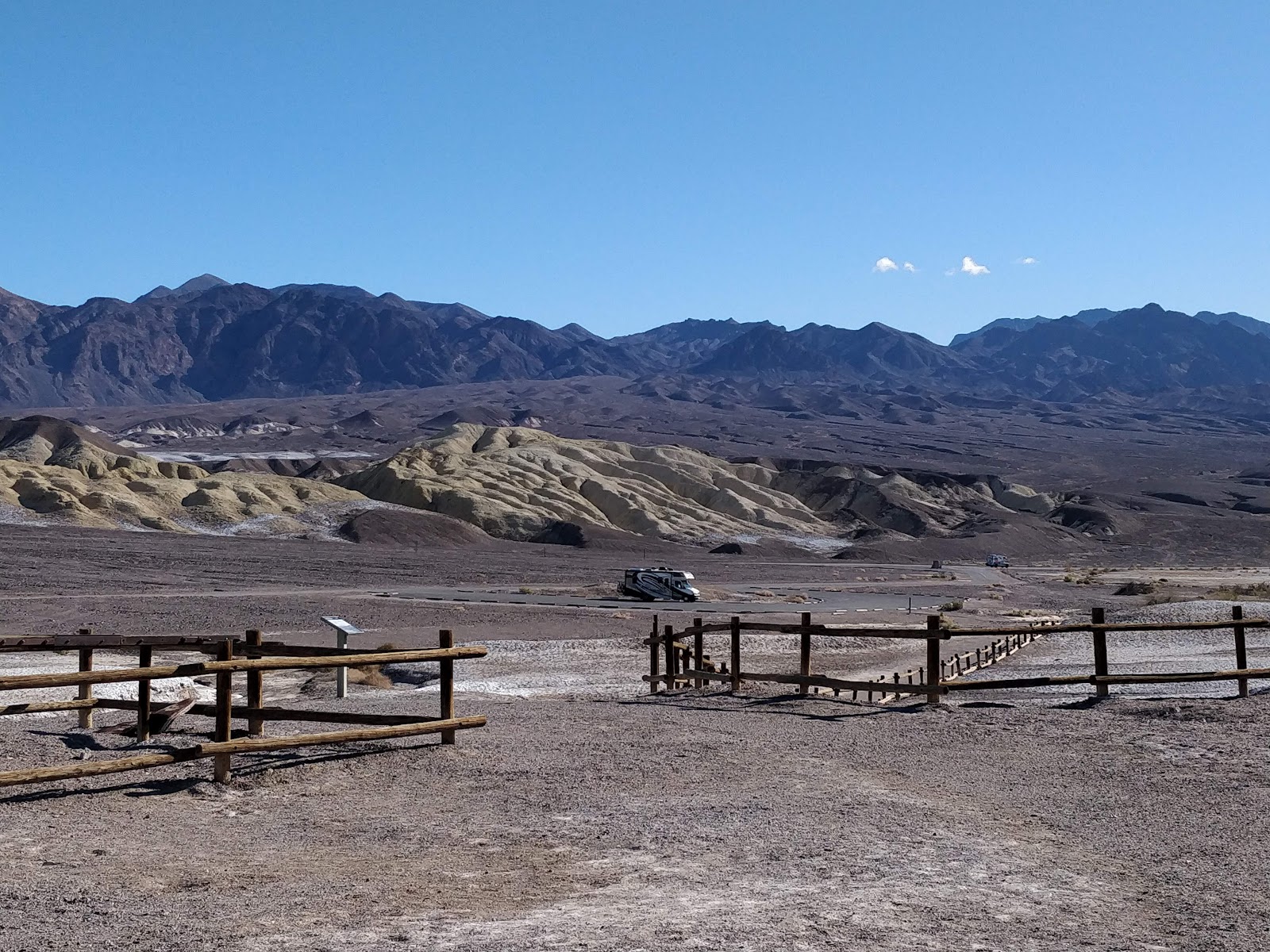 A scenic two days driving in Death Valley.  Beautiful mountain ranges with deep valleys between and desert landscape, even sand dunes.  The Badwater Basin is 282 feet below sea level, with huge salt flats stretching for miles surrounded by mountains all around.  It is really a gorgeous national park – well worth the visit.