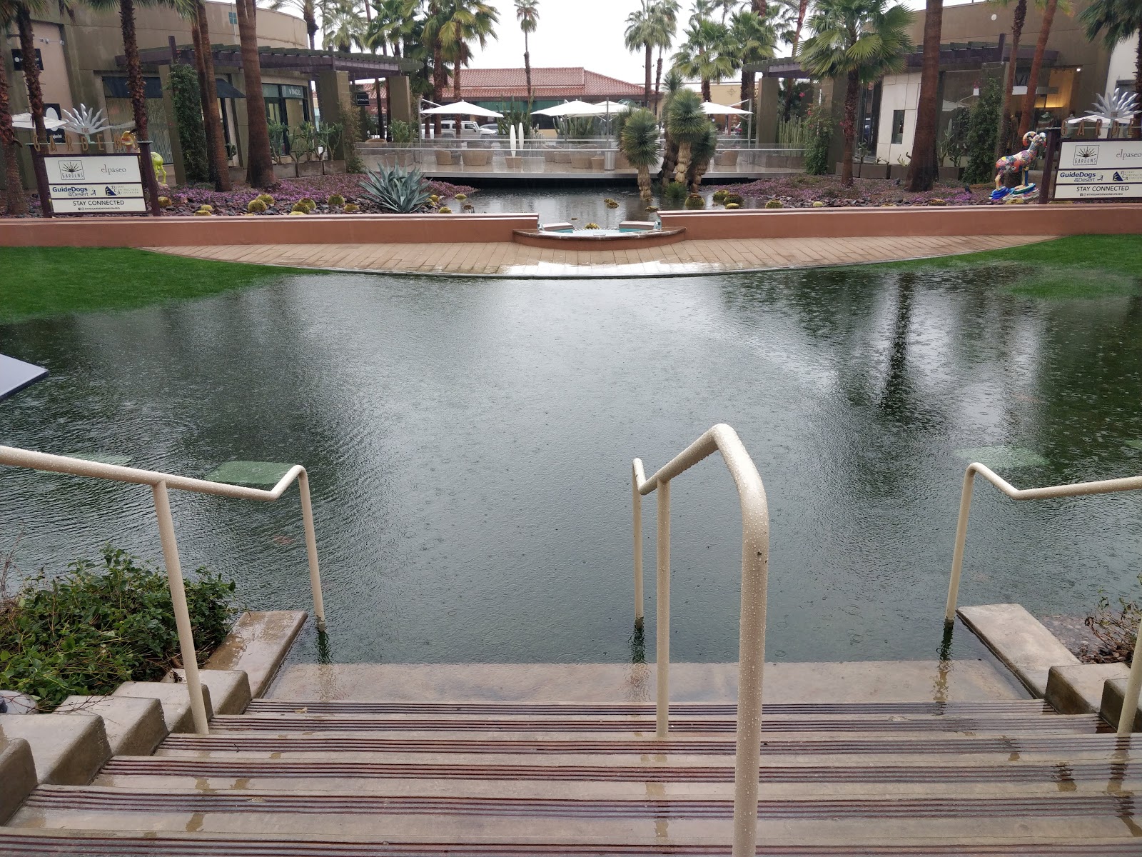 Heavy rains in the Palm Desert area – they got more than their yearly average in one day!  We do manage to visit Sunnylands Center – beautiful gardens and a retreat for world and national issues.  The gardens feature drought-tolerant plantings.