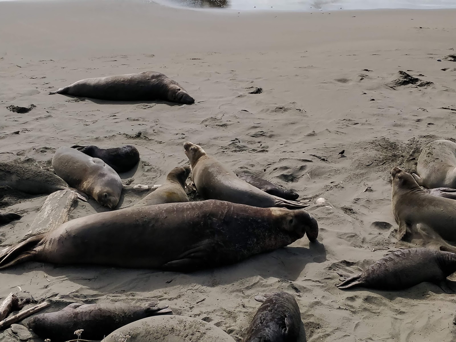 We stop to view about 100 sea lions and elephant seals on the beach with their newborn pups.  Very cool to see these creatures up close.