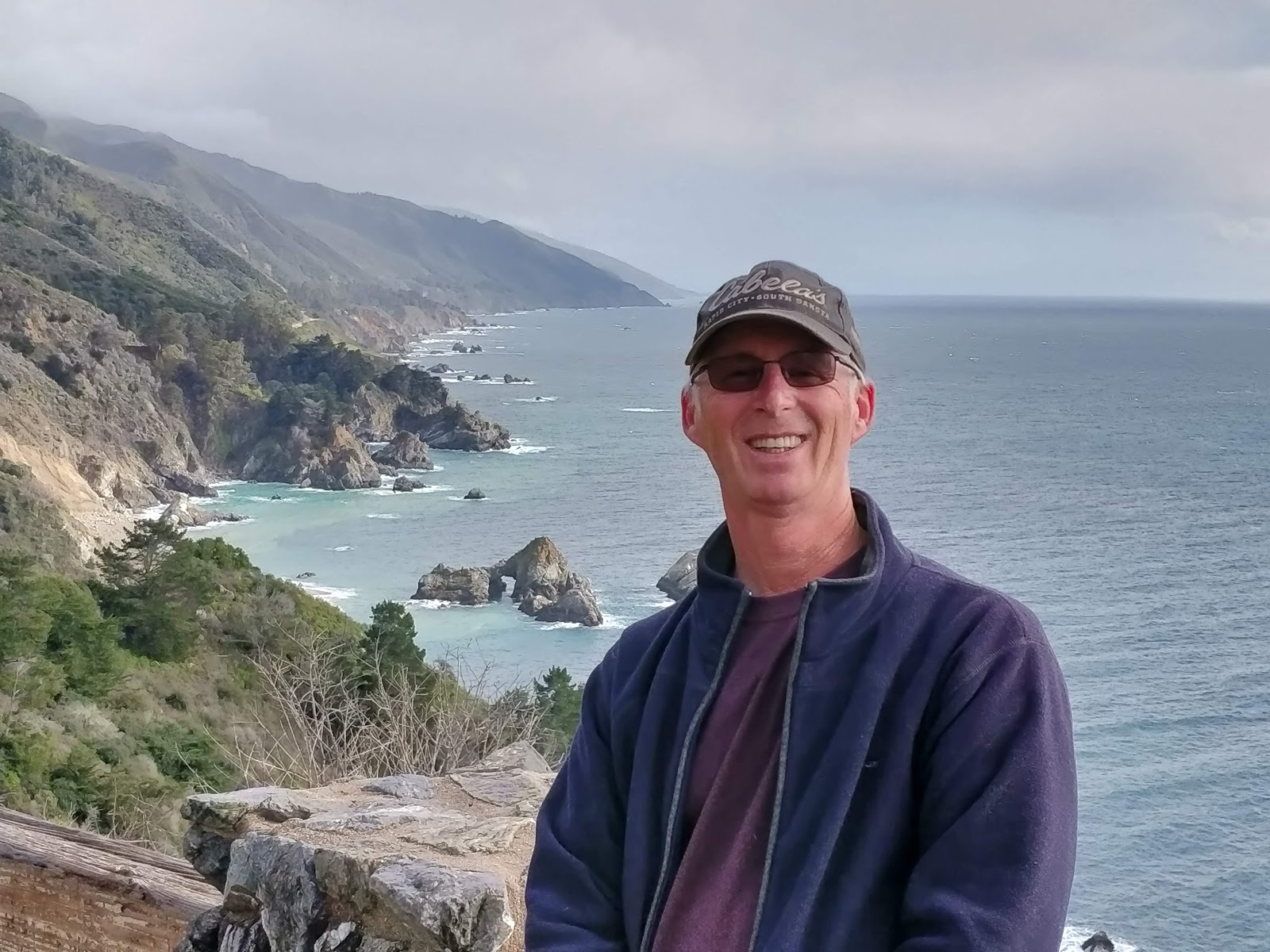 Back down to farmlands and vineyards and even oil fields!  We carry on to the coast and drive through Big Sur and Carmel-by-the-sea to Monterey.  The highway winds up and down and hugs the coast, very narrow, along the glorious Pacific Ocean.  The water is turquoise blue/green with whitecaps and swells.