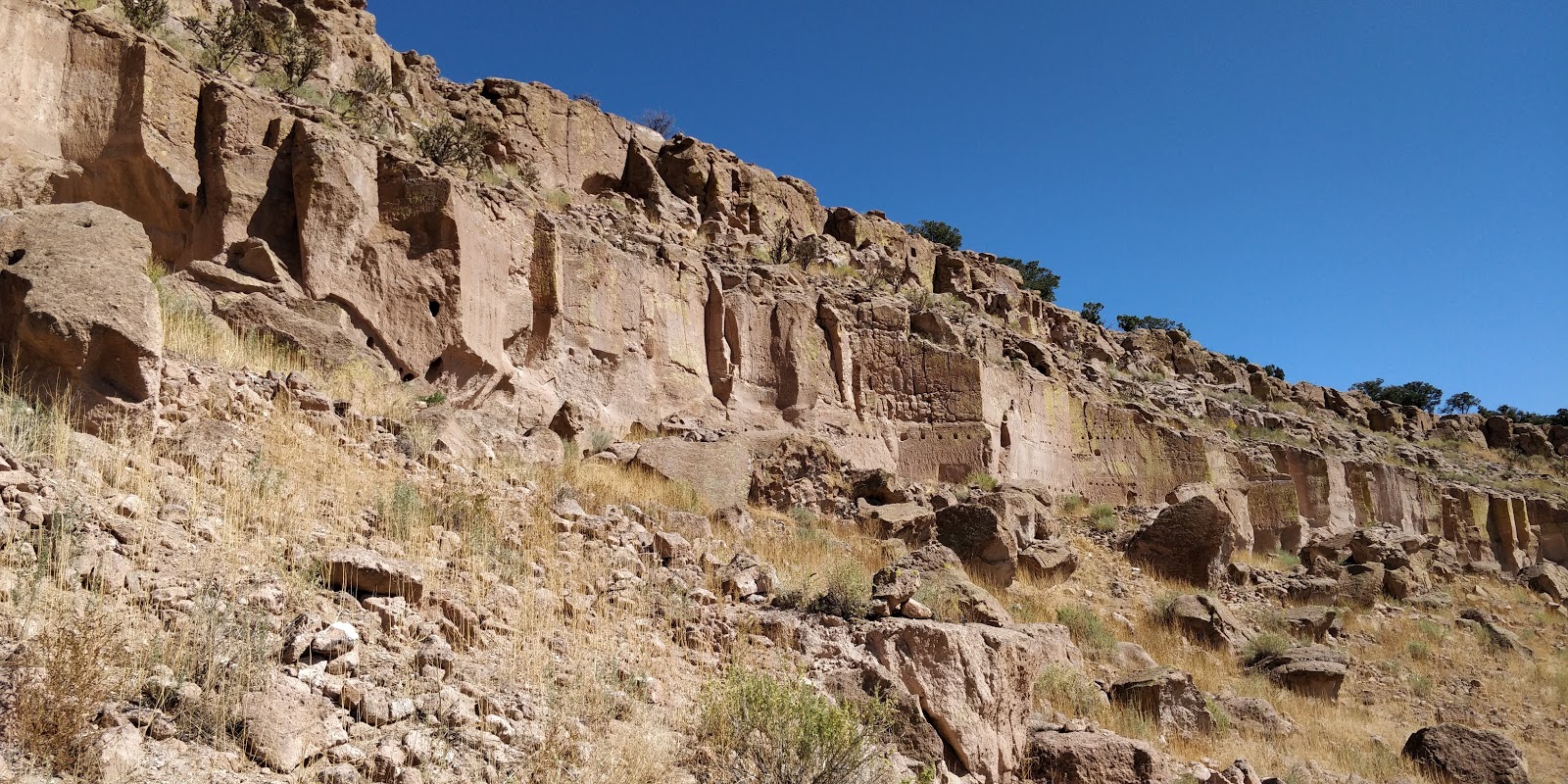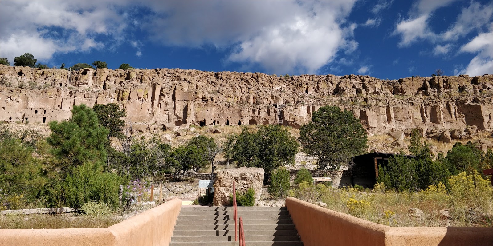 29 Sept 2019 – The Puye Cliff Dwellings show us the summer homes of the Santa Clara people in the 1900s.  These are up on the cool mesa, while the winter ones are built into the cliffs below.  Unfortunately few intact dwellings remain.  Nearby is Los Alamos where the atomic bombs were conceived, developed, and tested.  A very informative free museum shares information way over our heads, but interesting nonetheless.
