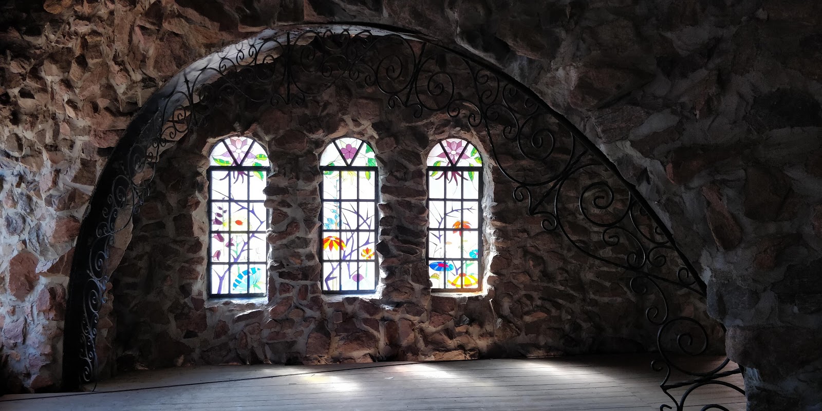 27 Sept 2019 – A drive out to Rye Colorado to see Bishop Castle.  Begun in 1969 as a 1-room stone cottage, it is now a castle.  Admission by donation and enter at your own risk as no building codes are followed, the owner is very anti-government.  The building includes a dragon, parapet, a vast open space with stained glass.  There are wrought iron walkways all around and up 160 feet high.  Very sketchy to walk around the structure, as sometimes railings are missing and sometimes pieces of the catwalks!