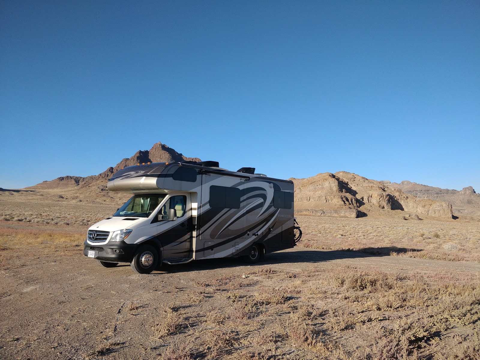 15 Oct 2019 – We turn for home with a stop at the Bonneville Salt Flats west of Salt Lake City where many land speed records have been set – up to 622 mph! We boondock out in the desert overlooking the flats in the distance. Tomorrow we head northwest for home. Some long drives ahead so likely this is our last post for this trip.